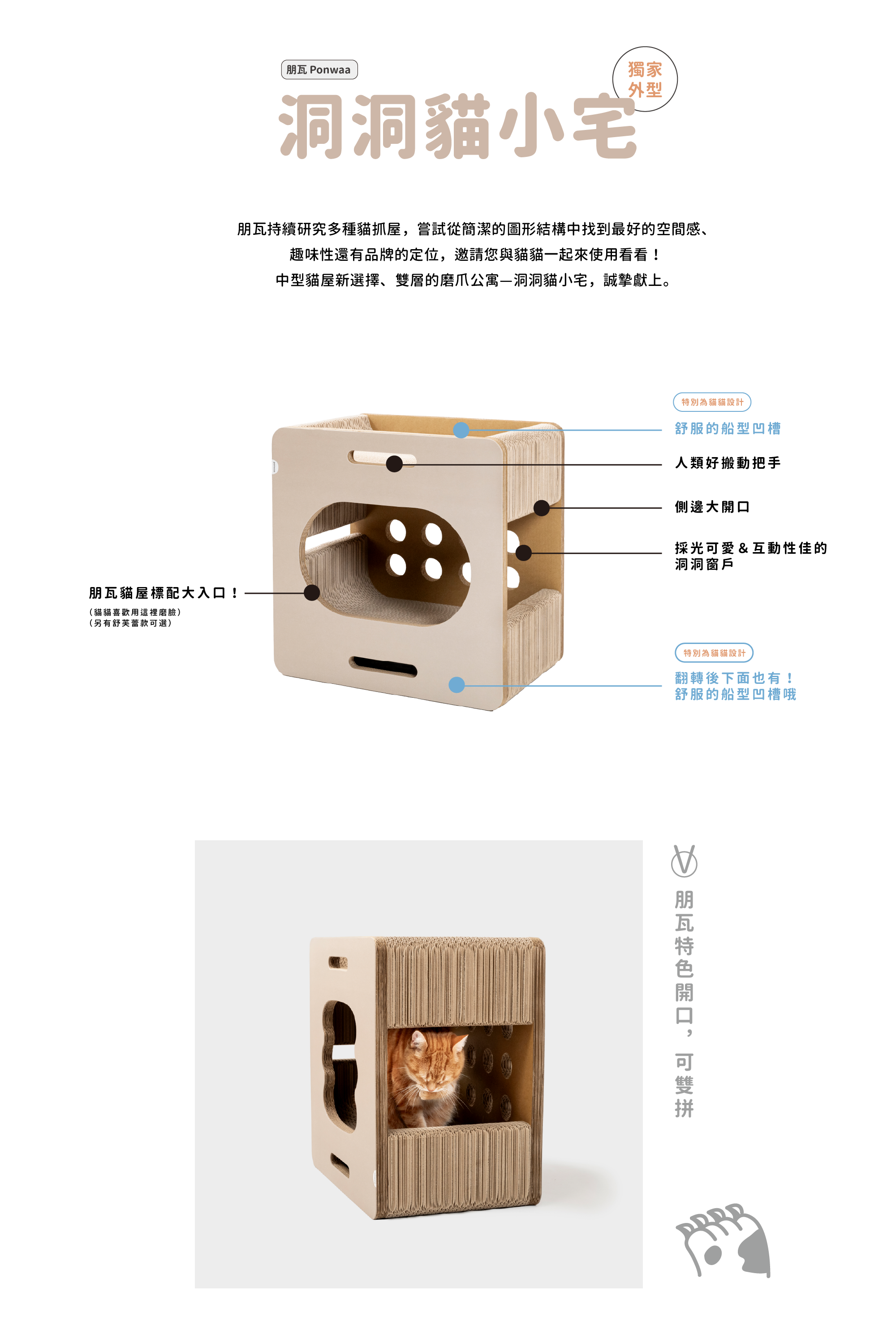 一個大入口的貓宅+貓咪好躺的船型大凹槽。